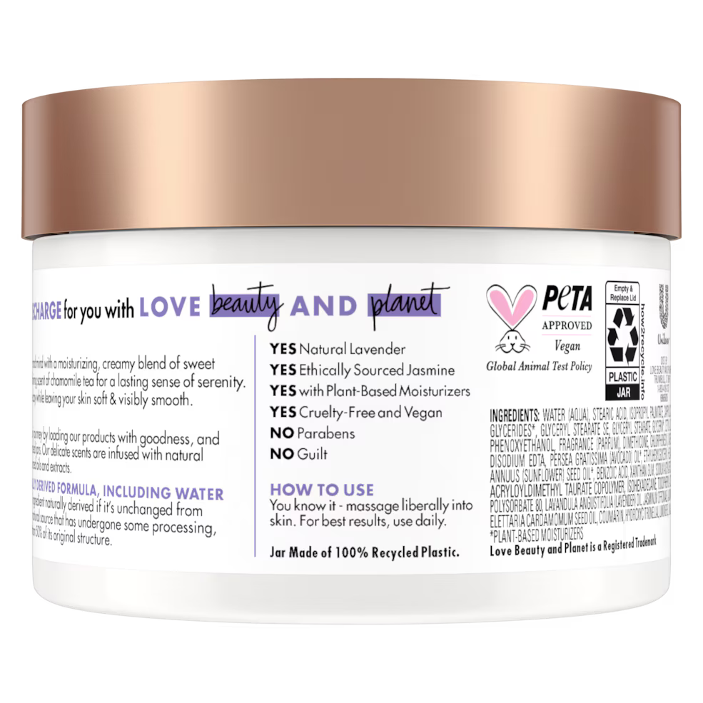 A delicate blend of fresh lavender and floral chamomile, our Beloved Lavender and Chamomile Tea Body Cream leaves dry skin lusciously softer and visibly smoother. With plant based moisturizers, our body cream and lotion is also paraben free. This body lotion is infused with essential oils and 92 percent naturally derived ingredients, a revitalizing blend that delivers lusciously softer and visibly smoother skin.