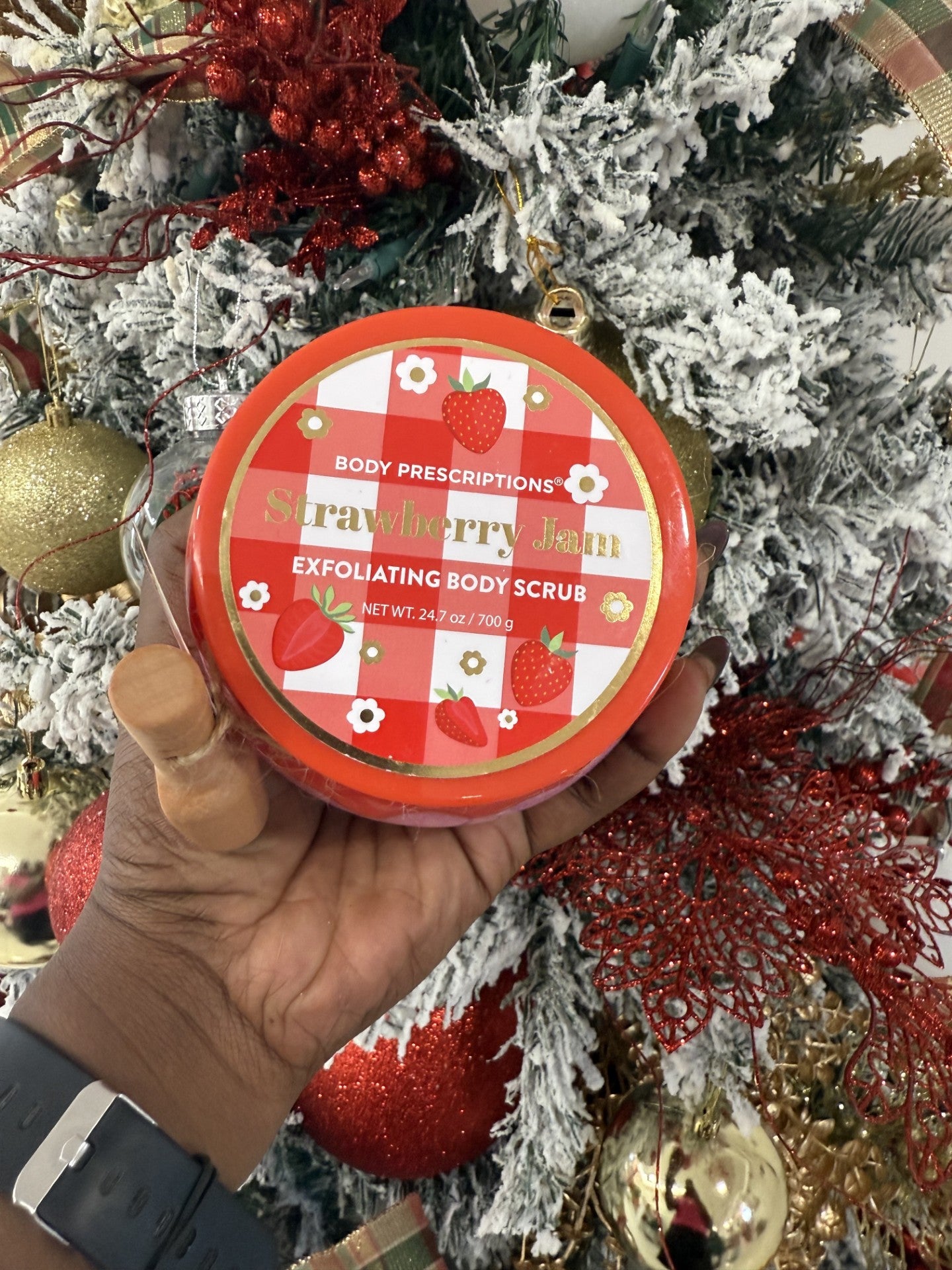 The Body Prescriptions Strawberry Jam Exfoliating Body Scrub is a gentle yet effective body scrub that removes dead skin cells, leaving skin feeling soft, smooth, and refreshed, all while providing a delightful strawberry aroma.
